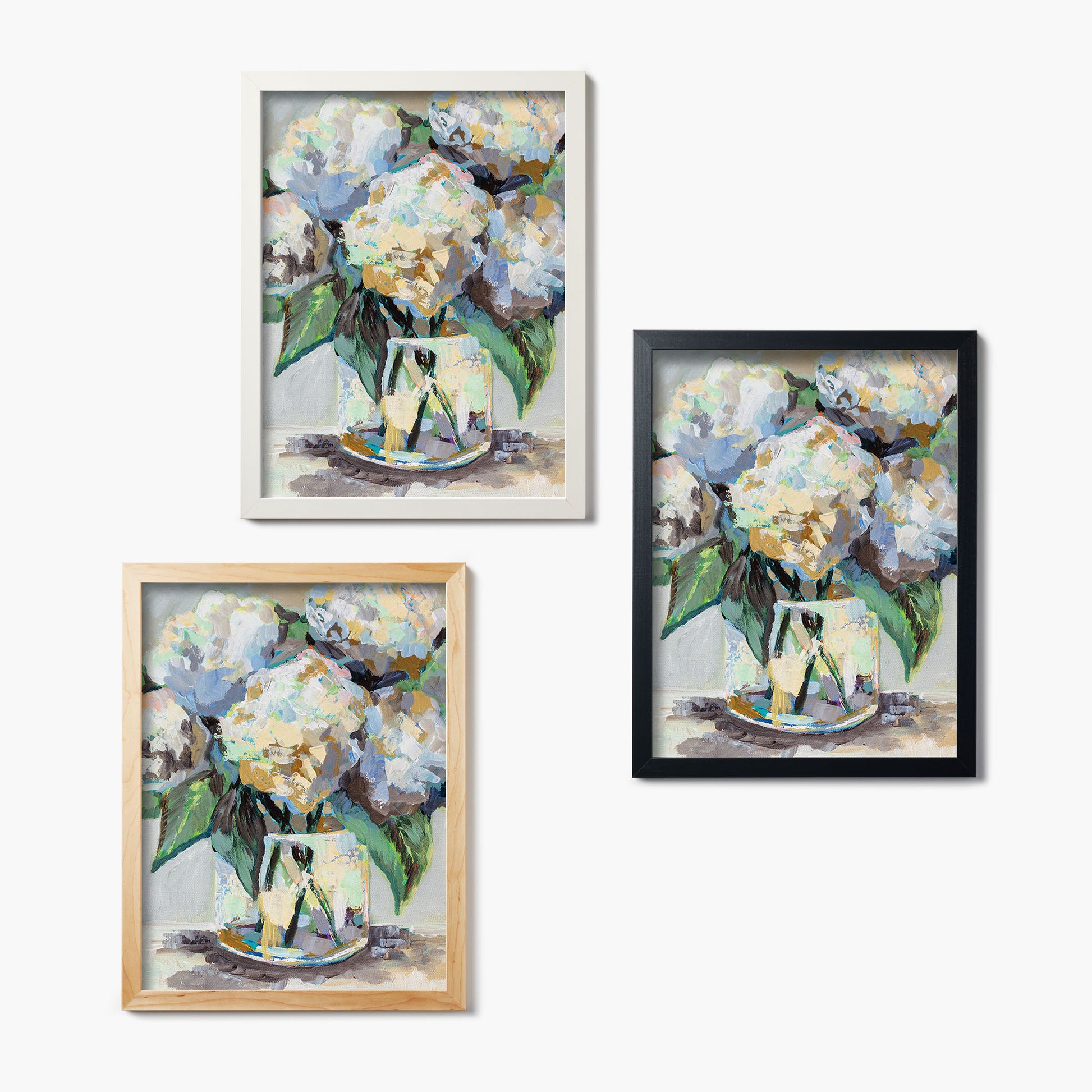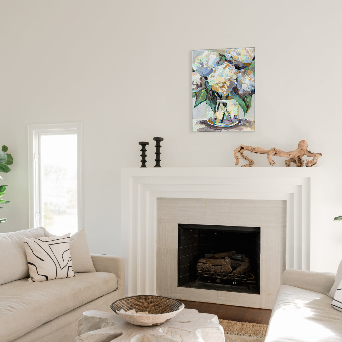 Cool, breezy, and effortlessly elegant, this painterly hydrangea still life brings major “just stepped into a beach house” energy to your walls.