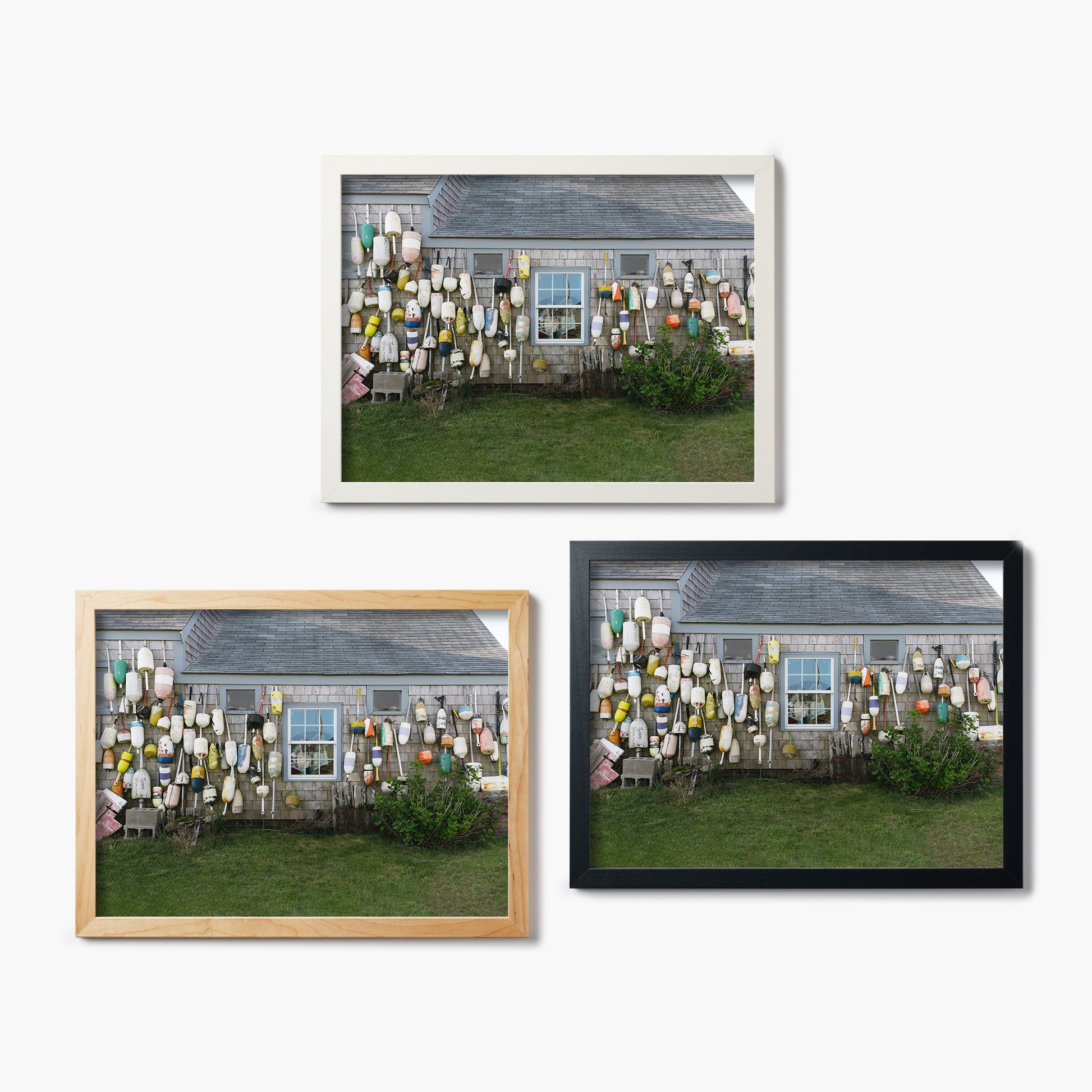 Buoys hang like nautical ornaments on a timeworn Cape Cod cottage in this shot by Chelsea Victoria, part of our All American Summer collection. Bring a little dockside charm to your home with this eclectic print.