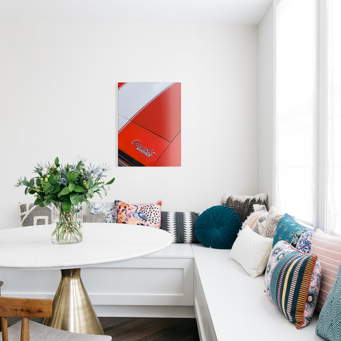 Look, if you're a car person, you just get it. This Camaro close-up from Casey Mac is red-hot, white-striped, and unapologetically cool. You can't get more sleek than this...until you print it on glass.
