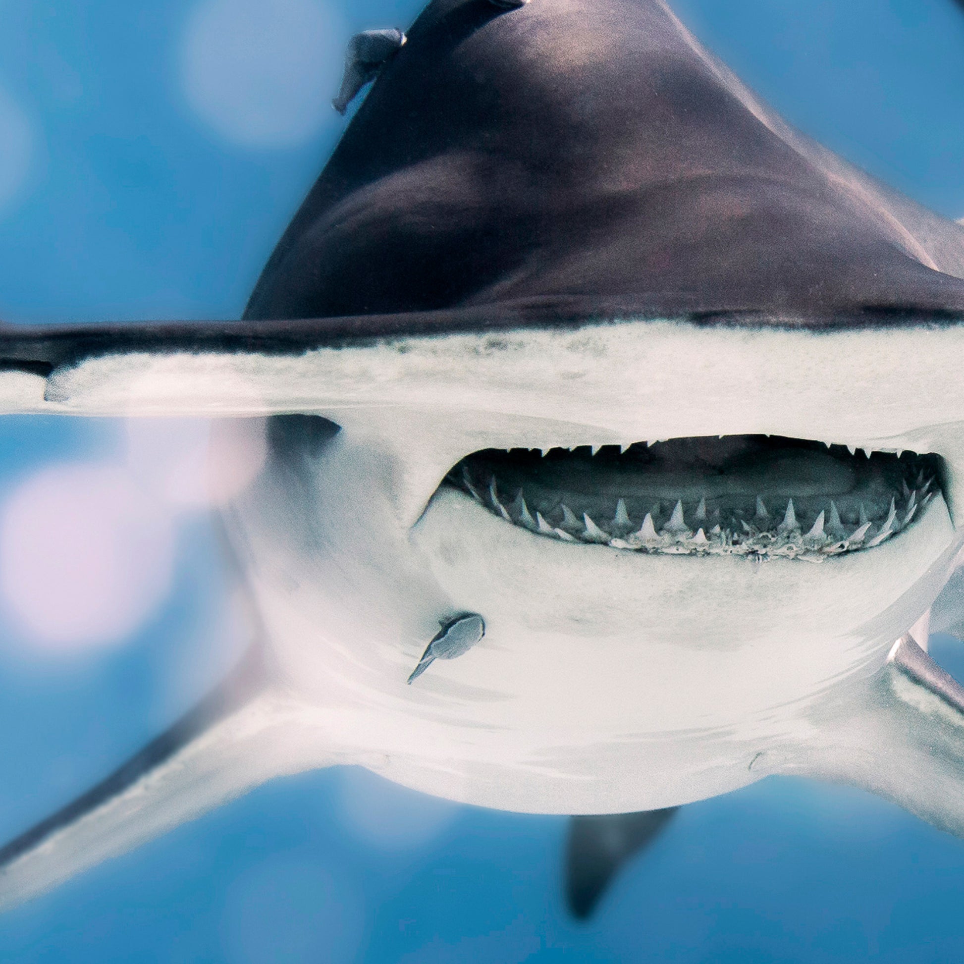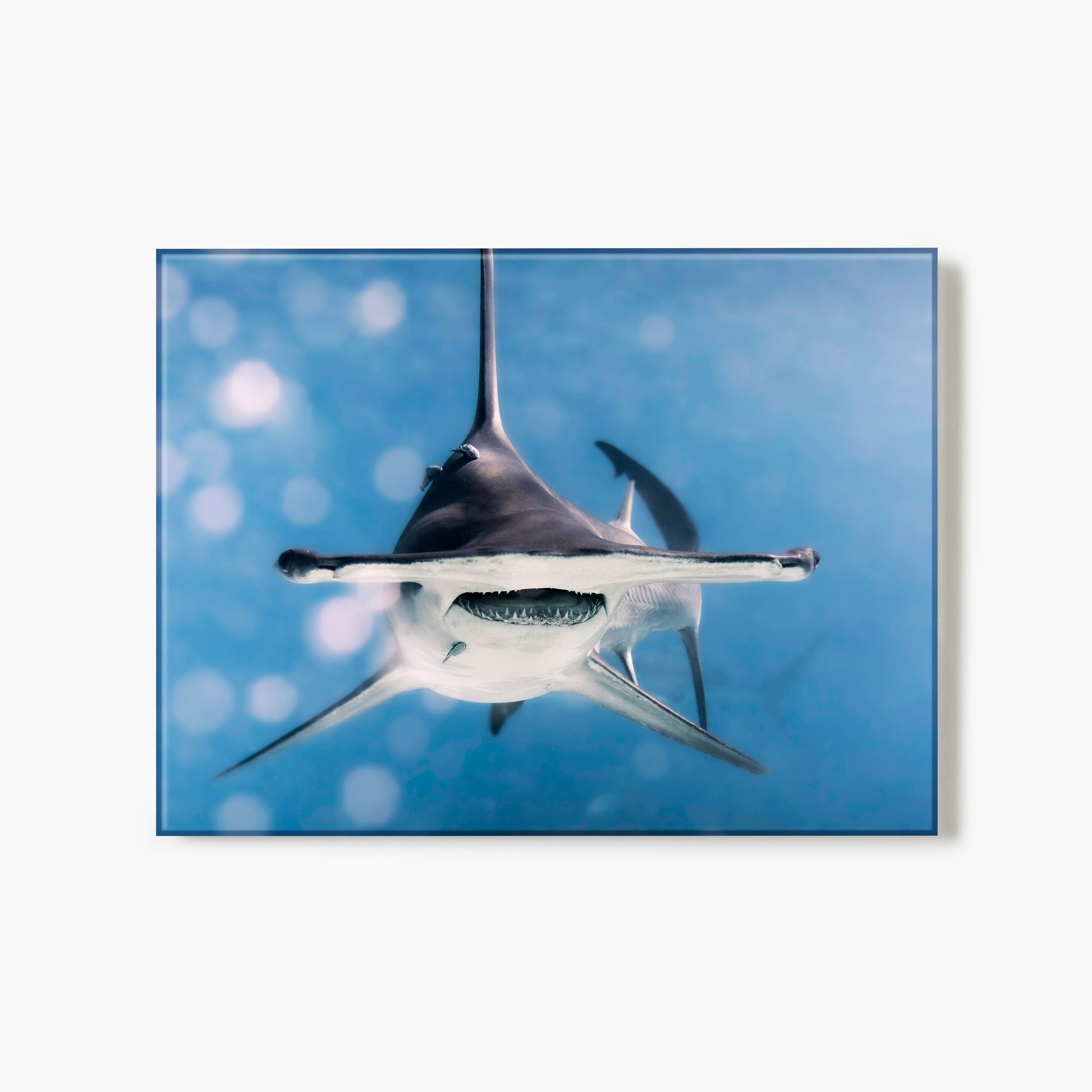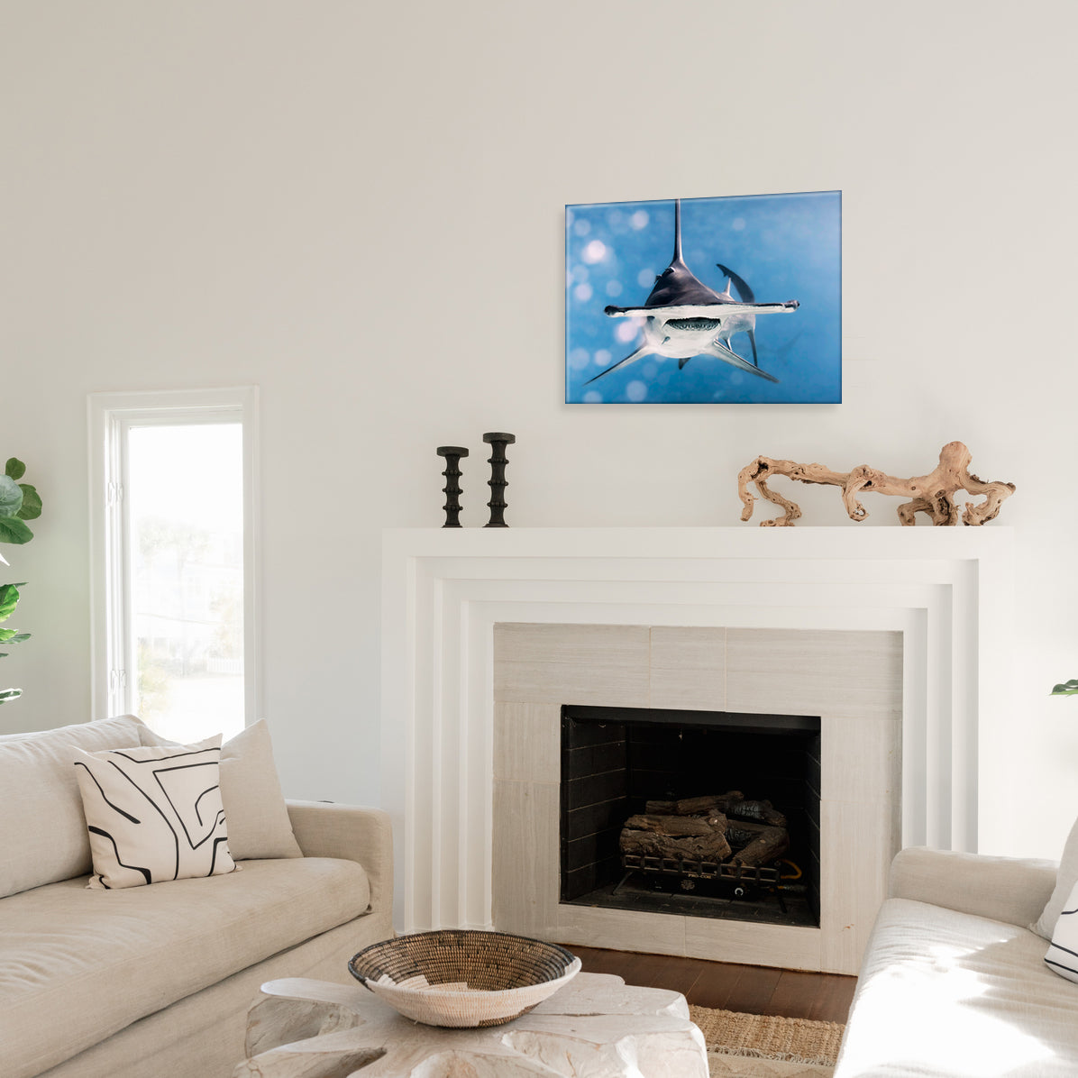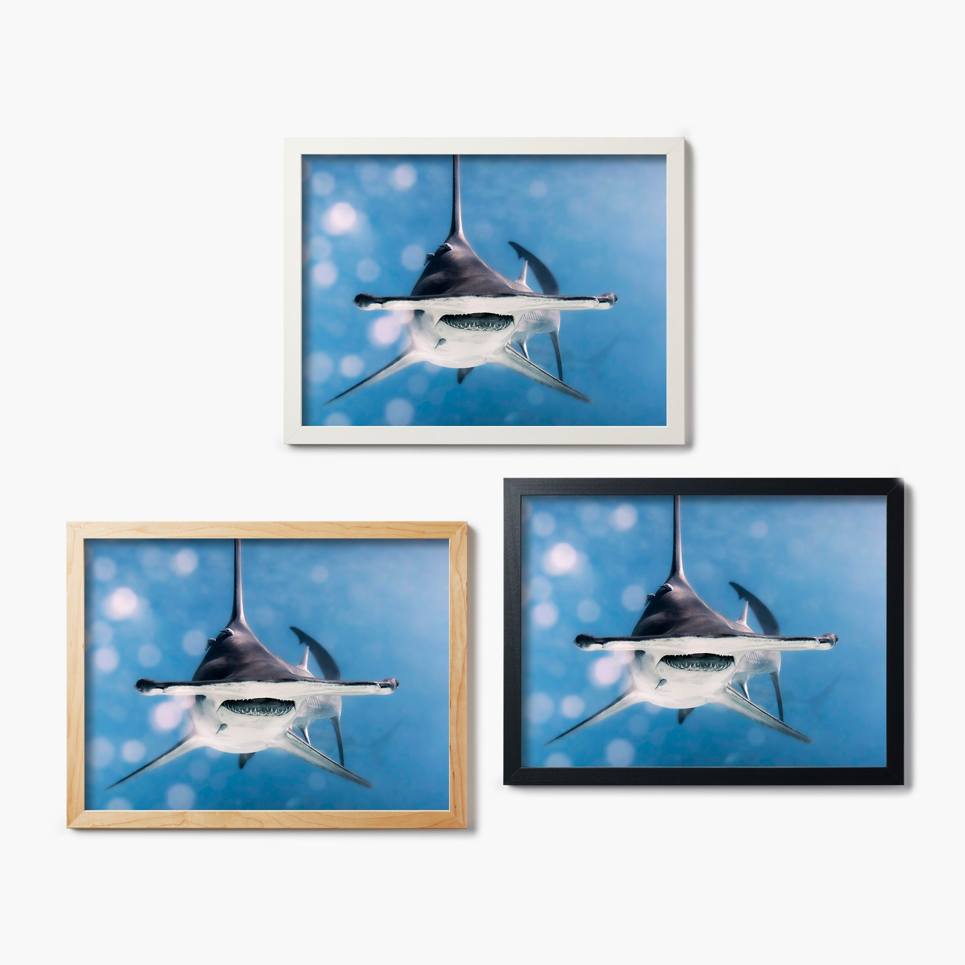 With its signature head-on stare and soft-focus backdrop, Mike Coots captures the hammerhead in all its surreal, swim-straight-at-you glory. 10% of proceeds from this print go to Sharks4Kids to support shark education, science, and conservation for the next generation of ocean advocates.