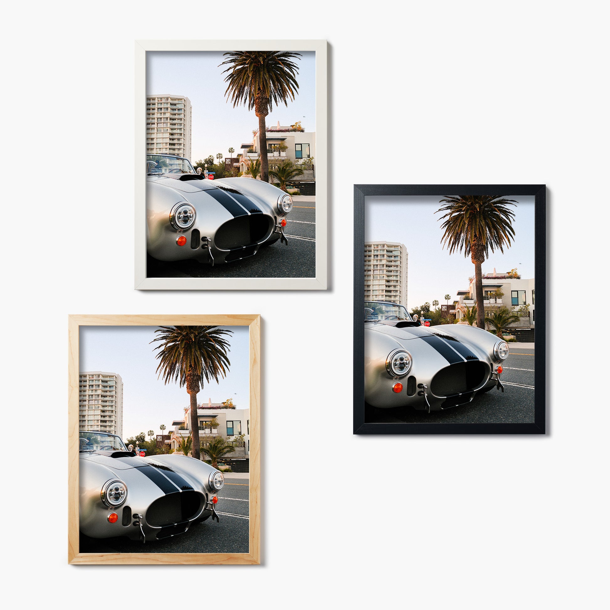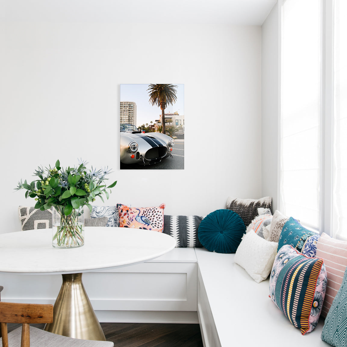 All shine, no shade. Victorsbusy captures pure California cool—a vintage silver Cobra gleaming under the Malibu light, framed by a lush date palm that knows it’s photogenic. Bring the beach town streets to your walls with this classic car moment.