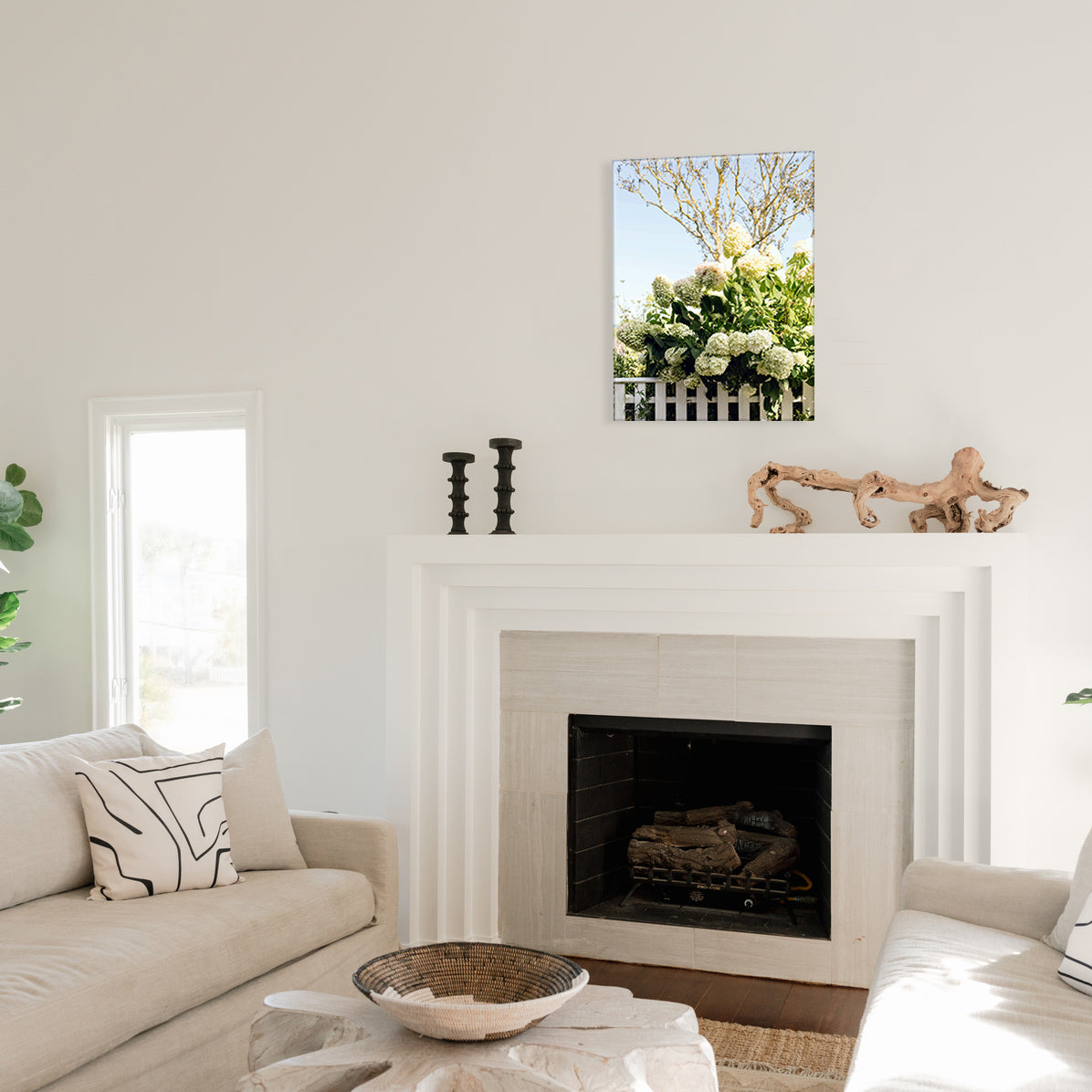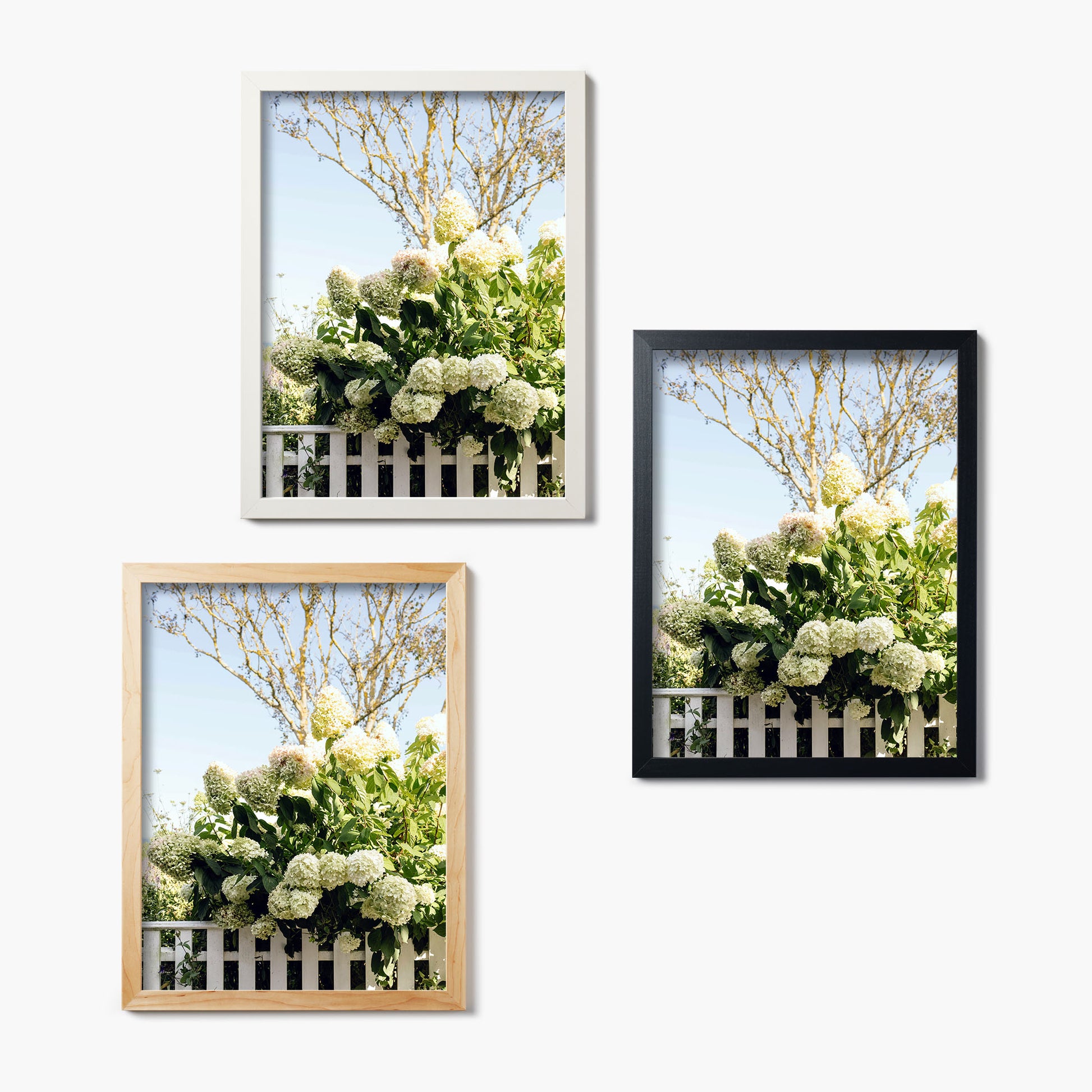 A sun-soaked fence framed by a cloud of hydrangeas? Iconic Nantucket. Captured in by Chelsea Victoria for our All American Summer collection. Your wall will bloom.