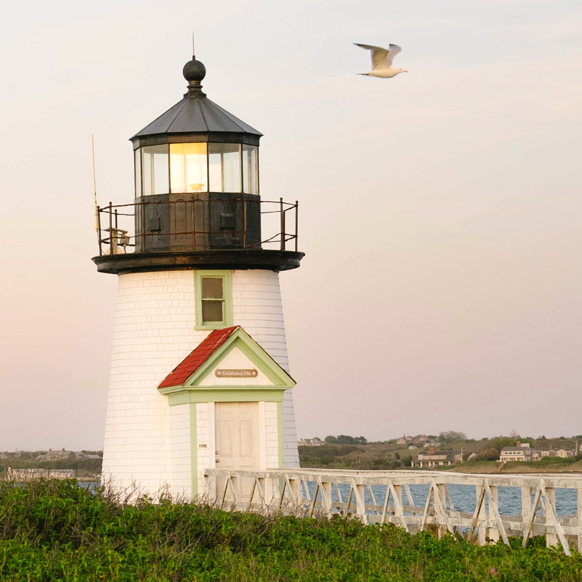 This boardwalk leads straight to New England charm. This sunset image of Brant Point Light was shot by Chelsea Victoria in Nantucket and is part of our All American Summer collection, this piece captures coastal calm with iconic style.