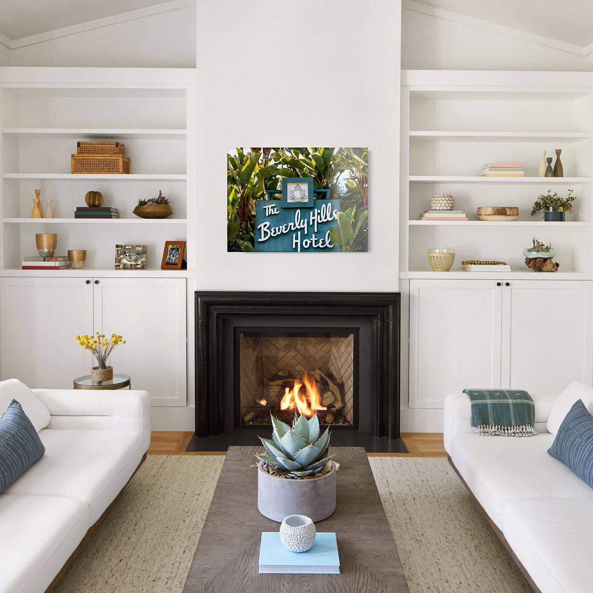Guest room goals, anyone? Jan Birch channels pure Old Hollywood glam—lush palms, iconic signage, and a hint of mystery. It’s the kind of luxury that whispers, “You’ve arrived.”