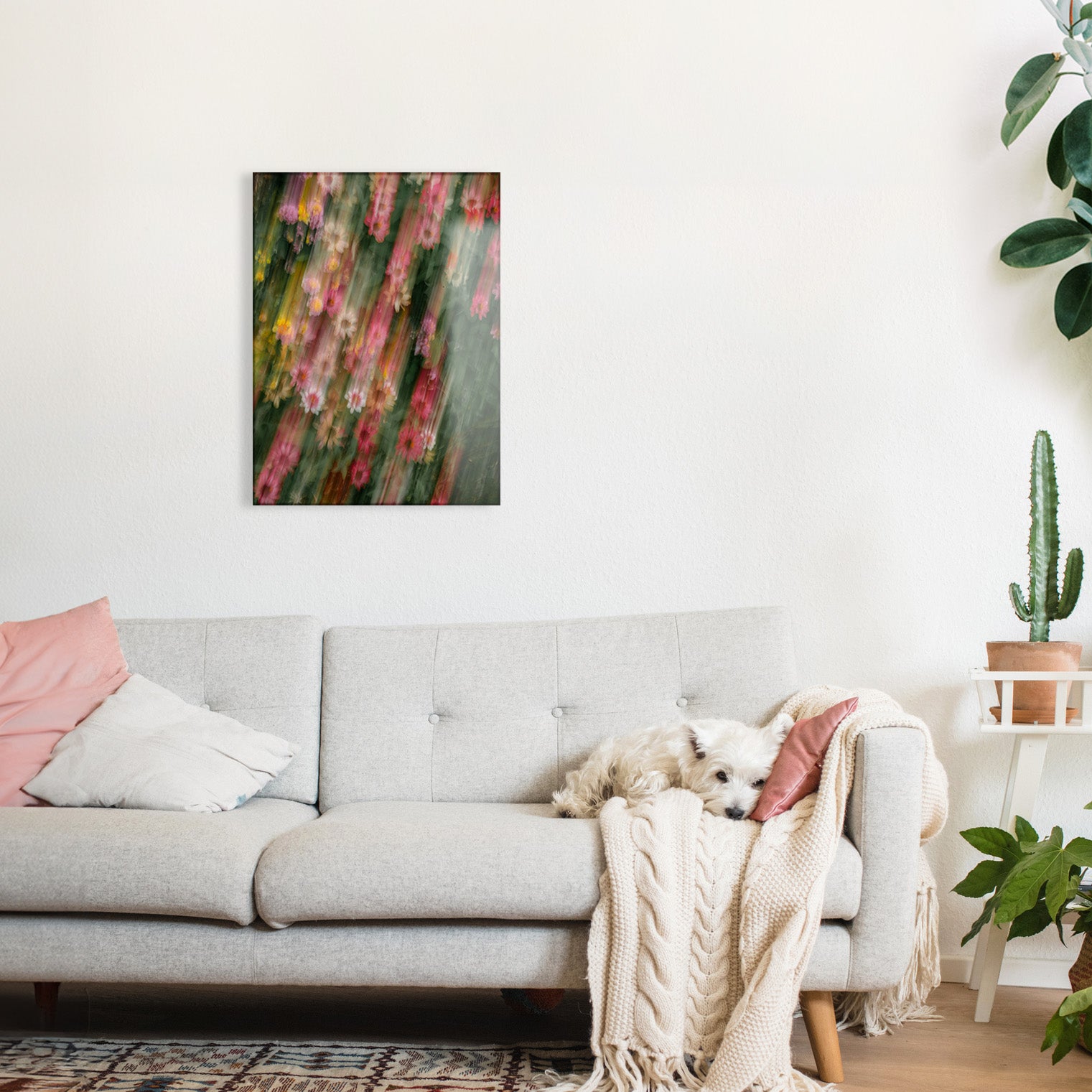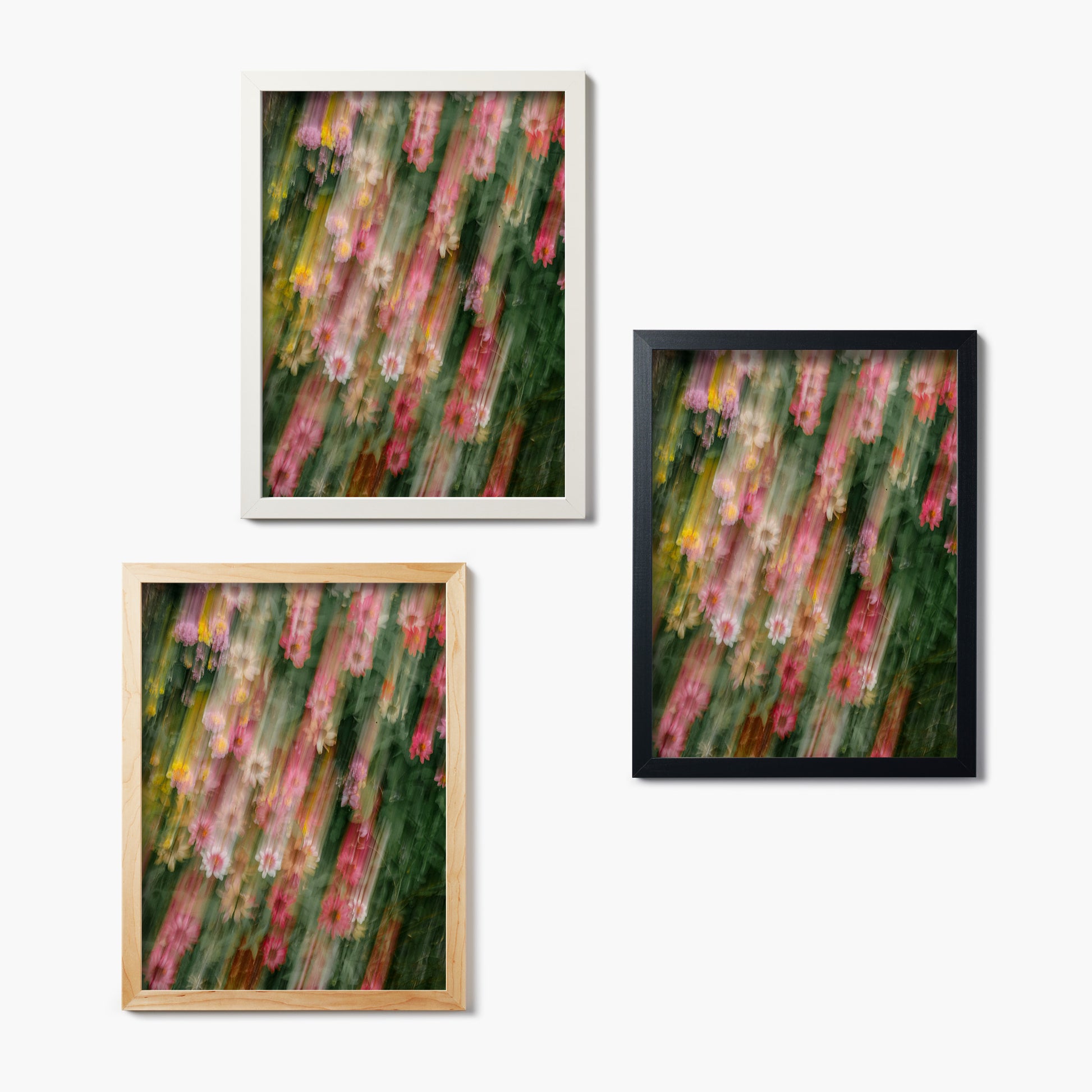 These florals have us doing a double take. Captured high in the Swiss Alps, photographer Hello Emilie turns a cluster of wild blooms into a blur of motion—pink and gold against a backdrop of green. Bring a streak of color and unexpected movement to your space with an energetic portrait that screams spring.