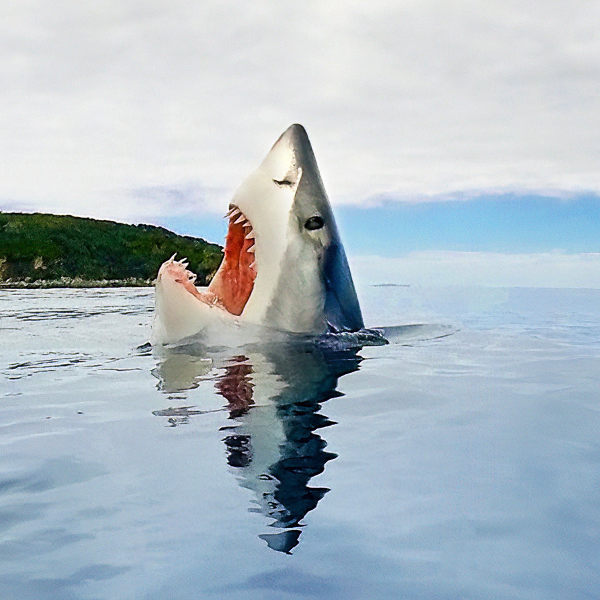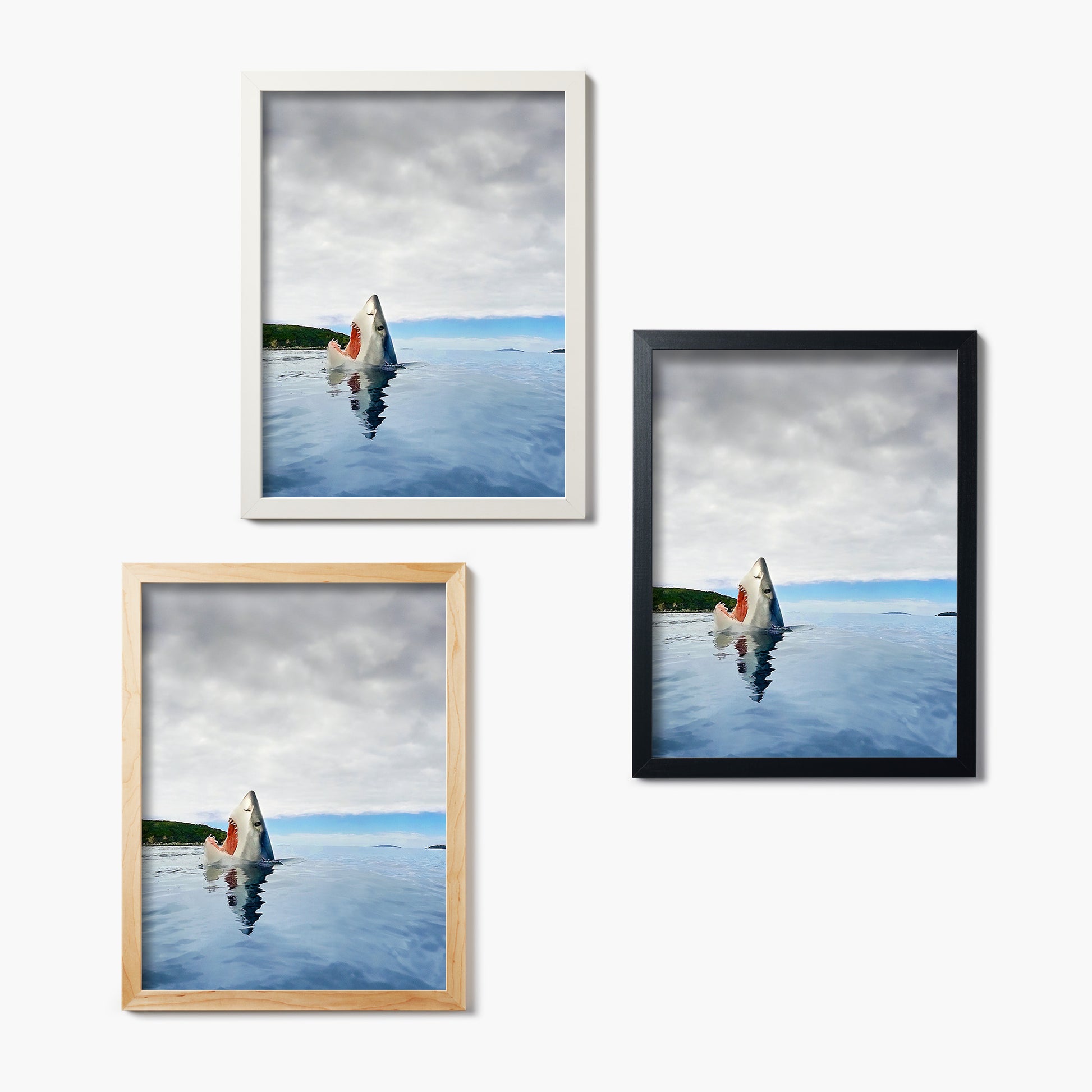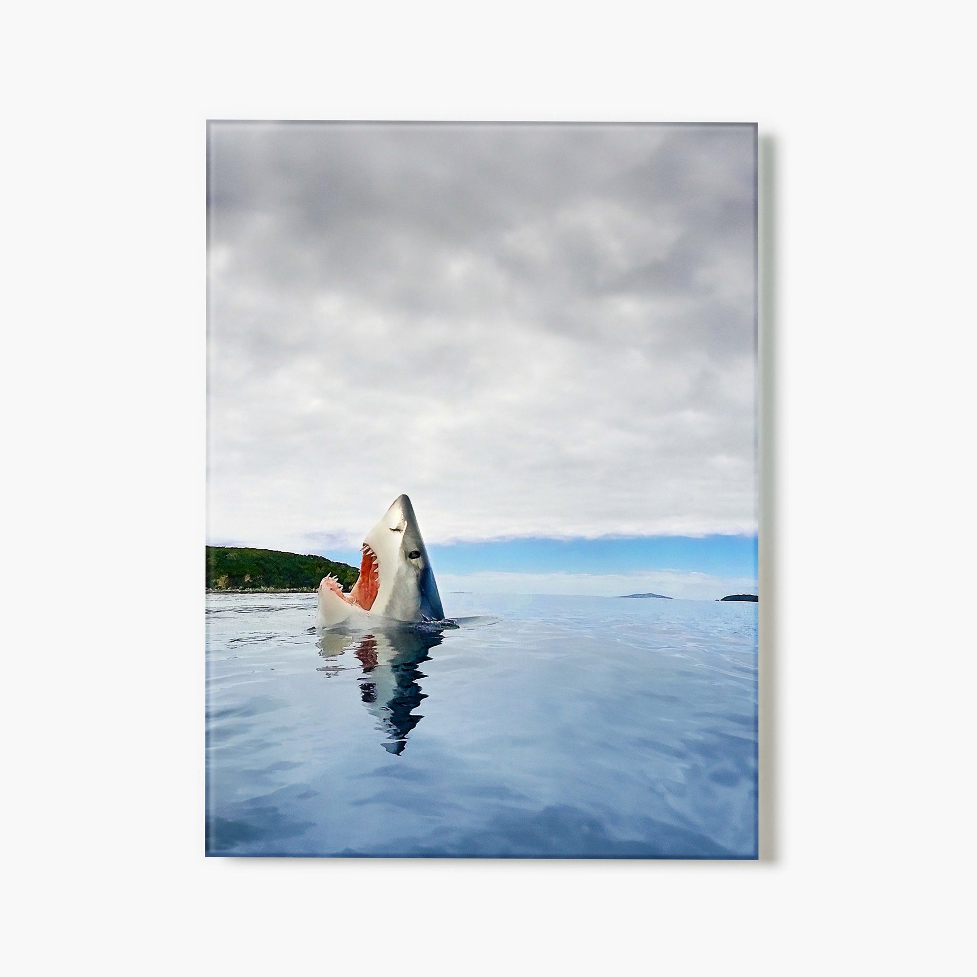 Talk about dramatic timing. Photographer Mike Coots captures a great white shark mid-breach—mouth open, energy unleashed. A rare look at raw power just above the surface. 10% of proceeds from this print go to Sharks4Kids to support shark education, science, and conservation for the next generation of ocean advocates.