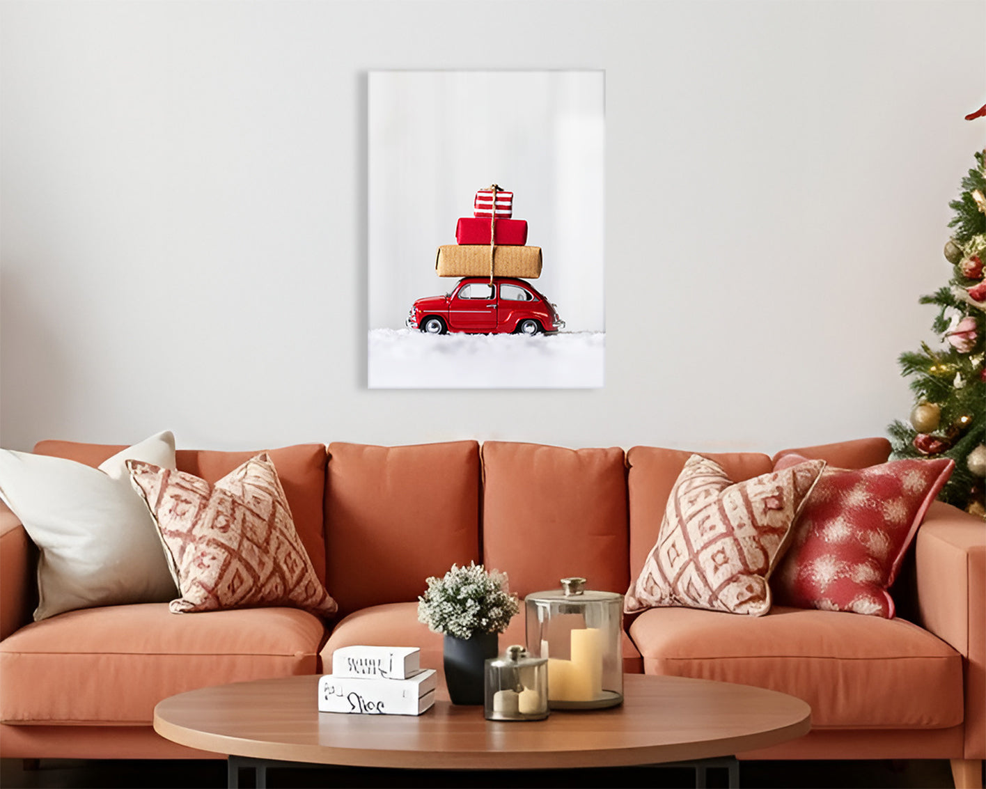 Small car, big holiday energy. This little red car stacked high with gifts is ready to drive a little Christmas magic into your home.