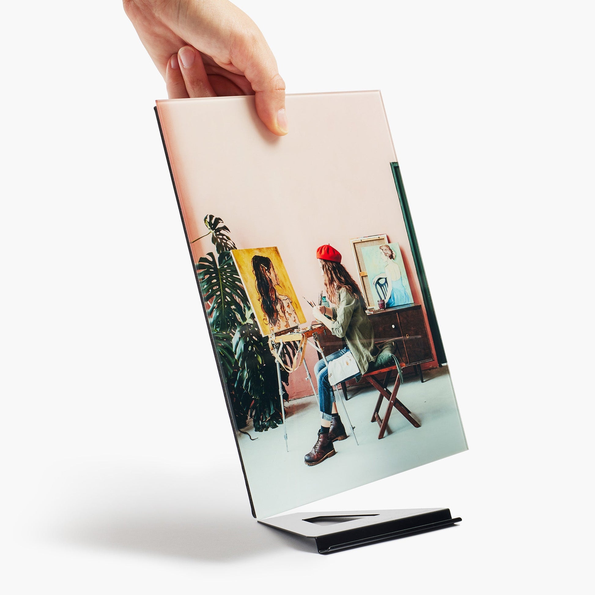 Crafted from a single piece of powder-coated steel, our print stands are light and securely hold our small and medium sized prints.
